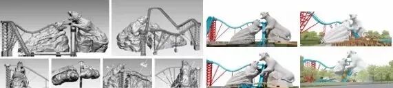 与建筑密不可分的就是设备。多媒体设备因为大多数都在建筑内部,是一个专项设计,文本不展开说明。本文所述方案阶段与多媒体相关的是需要根据厂家提资完成平面布局,以便给建筑设计单位提资。对于机械设备,在概念阶段因为没有具体确定,因此包装只是一个初步示意,在方案阶段,因为设备选型基本确定,因此我们可以完成设备的具体包装方案,并与厂家沟通可实施性和造价。同时,根据厂家的提资,确定功能用房的位置,排队线的设置以及标识牌的设计。需要注意的是,设计公司并不能完全按照厂家提资来设计,有时候厂家的提资未充分考虑乐园需求,功能用房面积过小等问题时有发生,仍然需要设计公司复核。