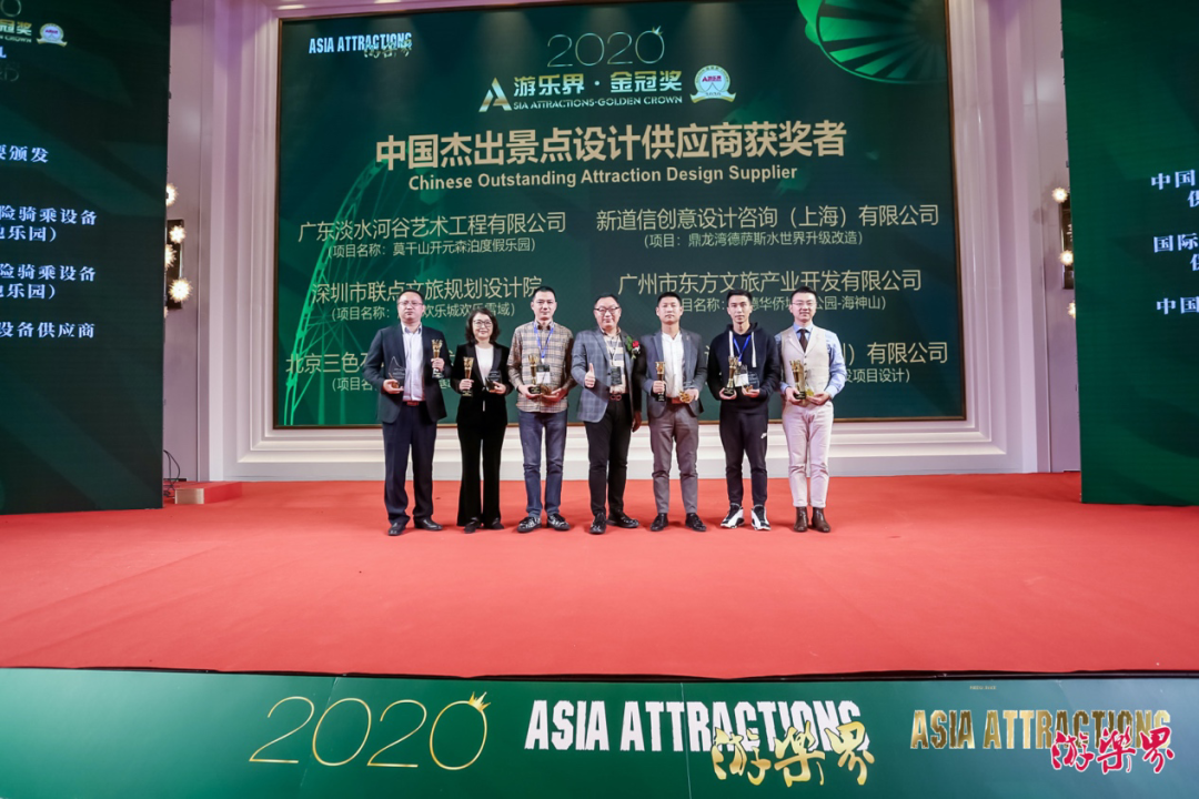 此次,新道信创意凭借《鼎龙湾德萨斯水世界升级改造》项目荣获“2020中国杰出景点设计供应商”奖项;新道信创意总裁吴士鋋先生也凭借其专业的态度及对品质的坚守,荣获本届金冠奖“2020中国游乐行业杰出贡献”奖项。
