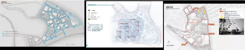 第二点是运营提资,理论上在方案阶段甲方应聘请运营顾问对乐园运营提出要求,设计师反应到平面中。不同的运营思路可以有不同的平面,并没有完全统一的标准,也没有一定的对错。例如在乐园入口处,有几十个业态要排到几千平的空间,有很多做法。而实际情况,很少有甲方能在方案阶段准备好运营团队,因此设计单位也要有能力根据自己的运营经验完成符合运营基本需求的平面布局。