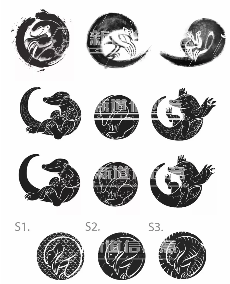 初稿的设计中,设计师普遍更多关注穿山甲造型的卡通娱乐效果,而忽略了其本身外形构造的特点,因此在二稿的创作过程中,更加注重尾巴,鼻子、鳞片等穿山甲本身特征,向更加逼真写实的样貌靠近。